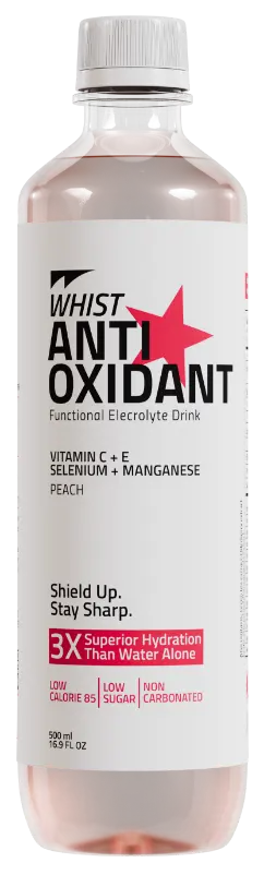 Functional Electrolyte DrinkAntioxidant with vitamins C & E plus selenium, manganese, and zinc helps protect cells from oxidative stress and supports the immune system.ShieldUPStayContribute to Normal Function of the immune SystemVitamin C + ESelenium + ManganesePeachLow SugarWHISTWith whist We recommend avaried and balanced diet and OXCIDANTANTIahealthy lifestyleWith whist We recommend avaried and balanced diet and ahealthy lifestyleWHISTANTIOXCIDANTSharp